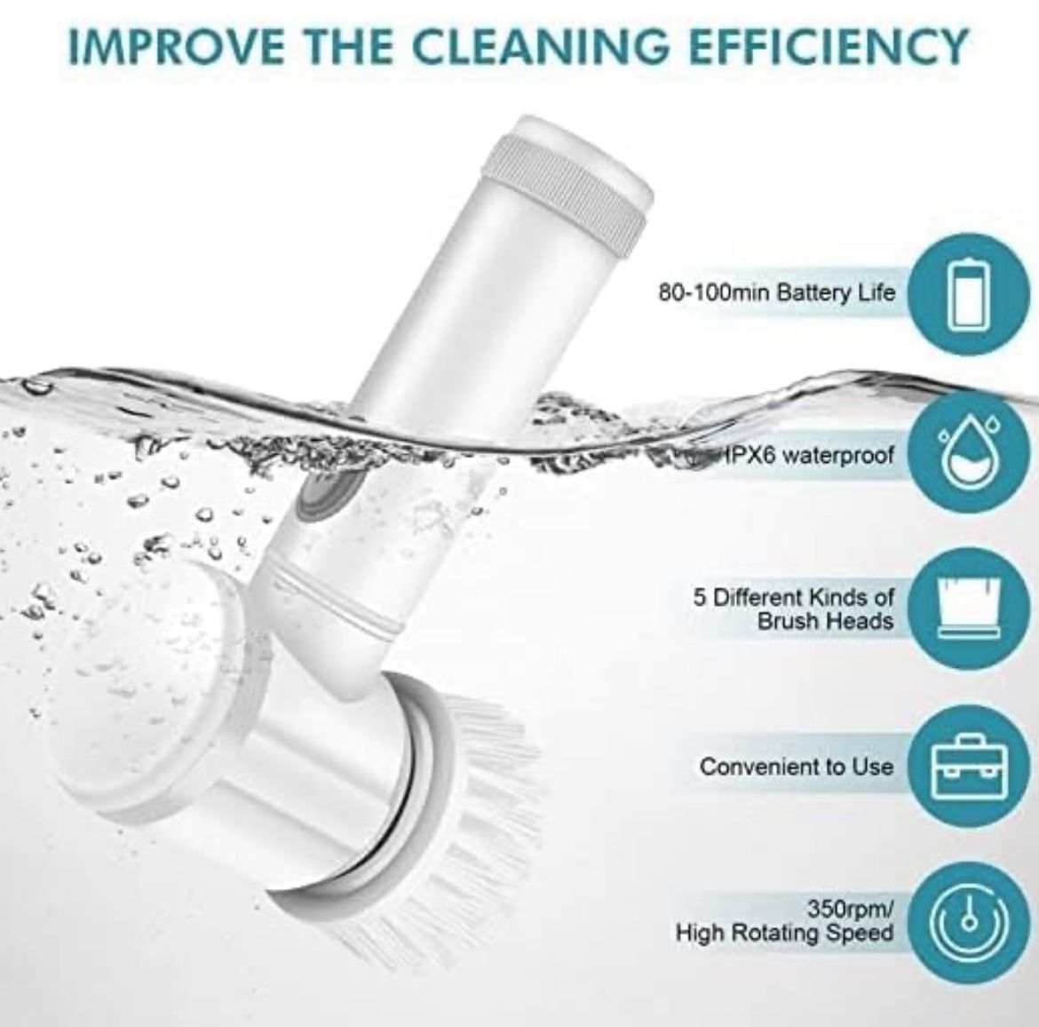 BIGXEN Plastic 5 In 1 Magic Brush Electric Magic Brush Multifunctional Magic Brush With 5 Brush Heads Charging Cord For Home, Kitchen Tiles, Carpet Sink Wash Basin Bath Shower Pack Of 1