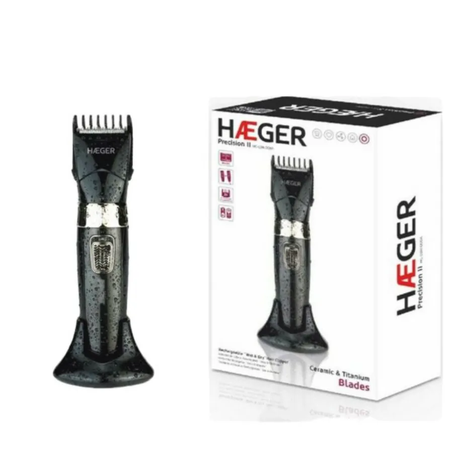 Haeger hair clipper, suitable for use on areas such as hair, beard and body. It works with a battery, while it takes 8 hours for a full charge, which provides up to 45 minutes of autonomy.