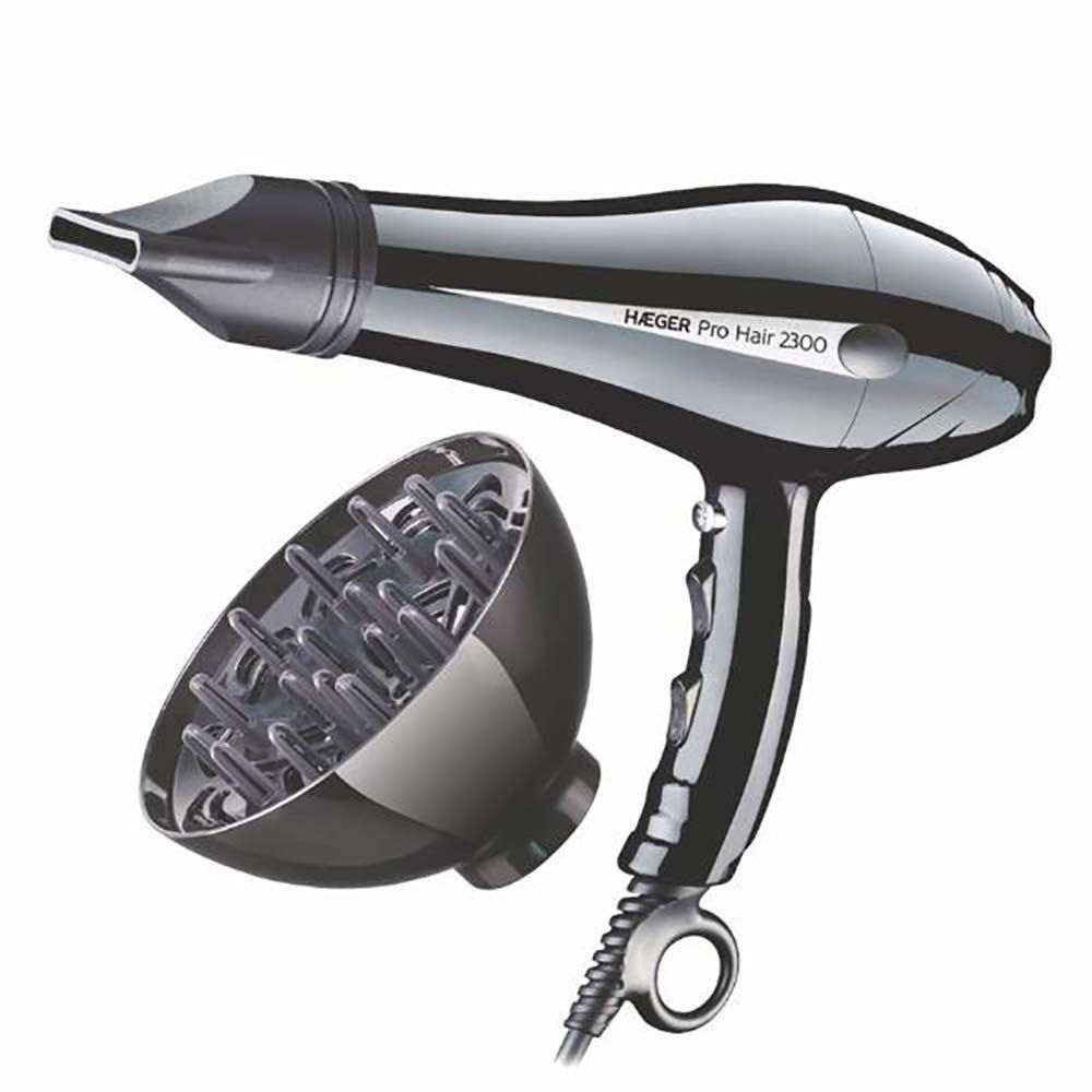 2,000W DC motor Hairdryer with folding handle “Non-Stop” anti-heating system 2 speeds and 3 temperature levels “Cool shot” function: Burst of cold air Removable filter cover Hanging ring Accessories: Concentrator and Diffuser