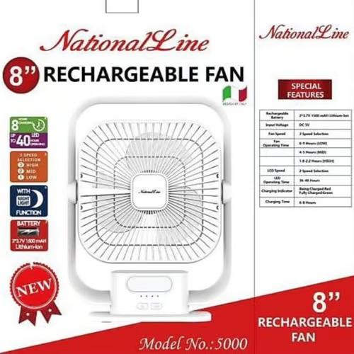 Rechargeable Box Fan Mini NationalLine rechargeable Table Fan With 3 Speed Mode And 2 Power LED 3000mAh Battery With 9Hours Working USB C-Type Charger 8 Inch Desk Fan